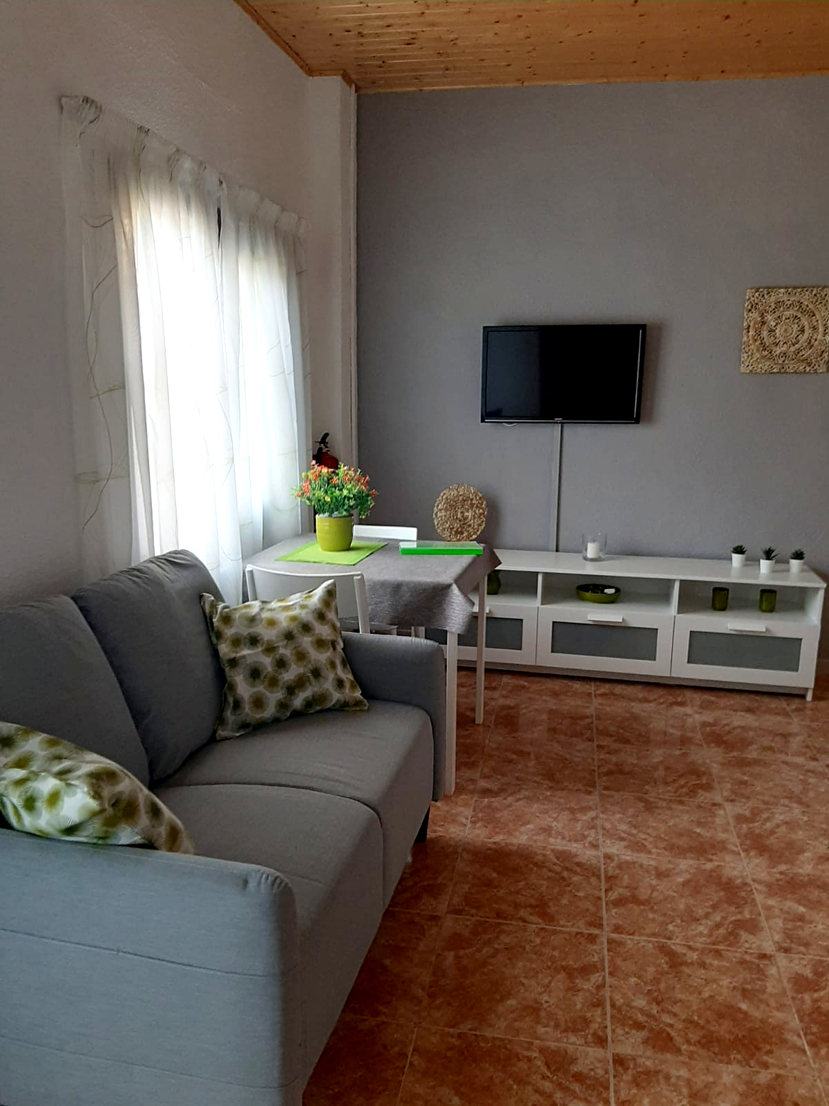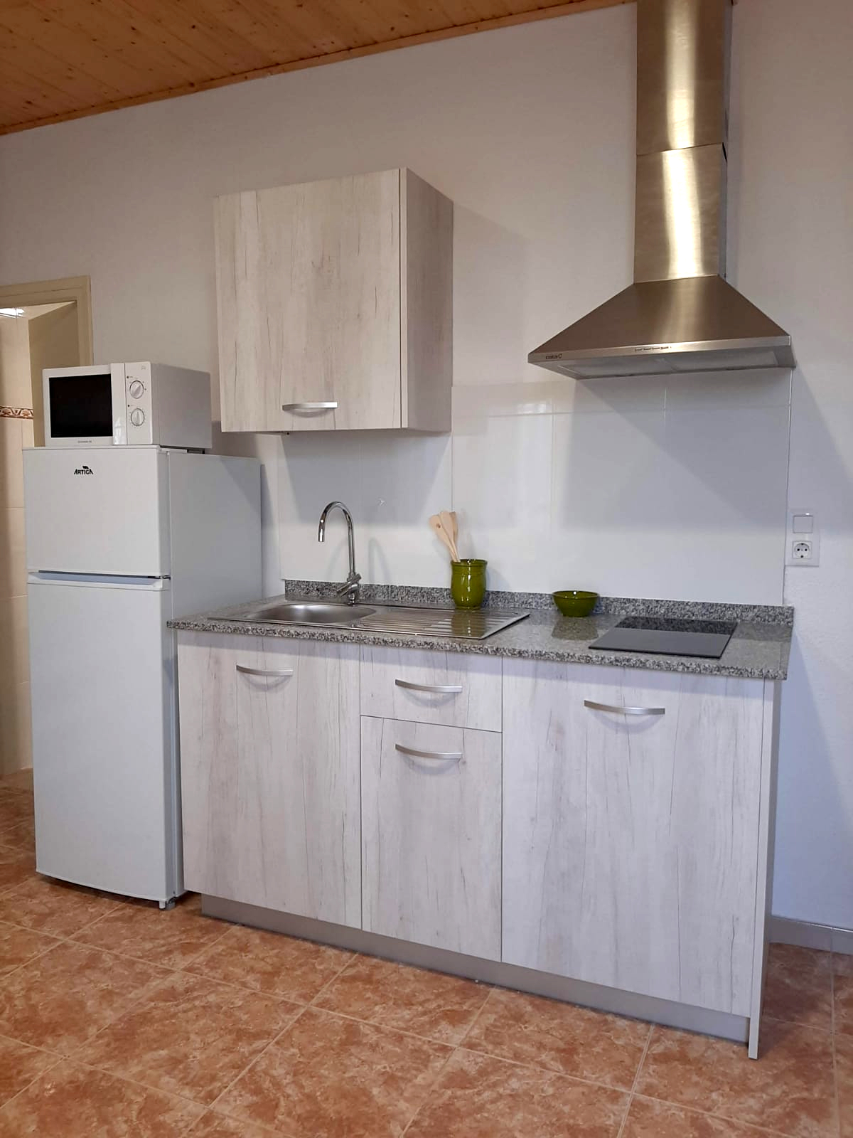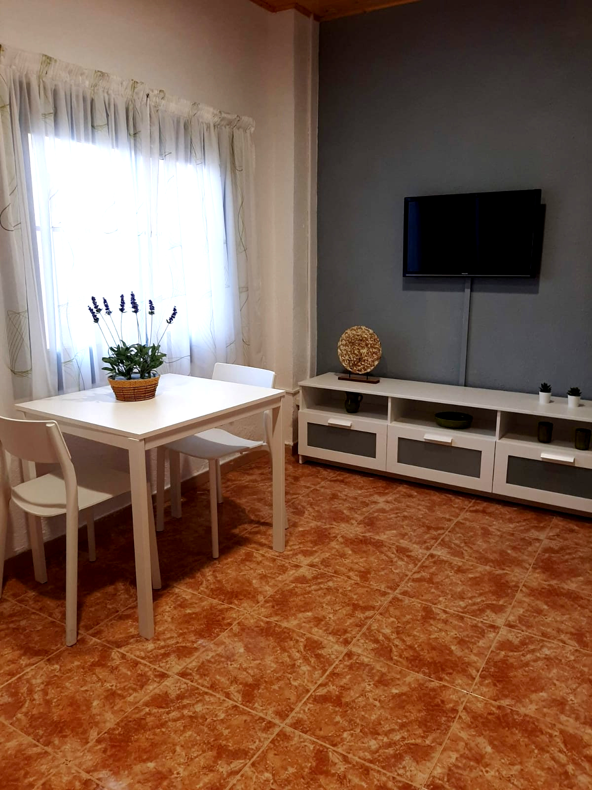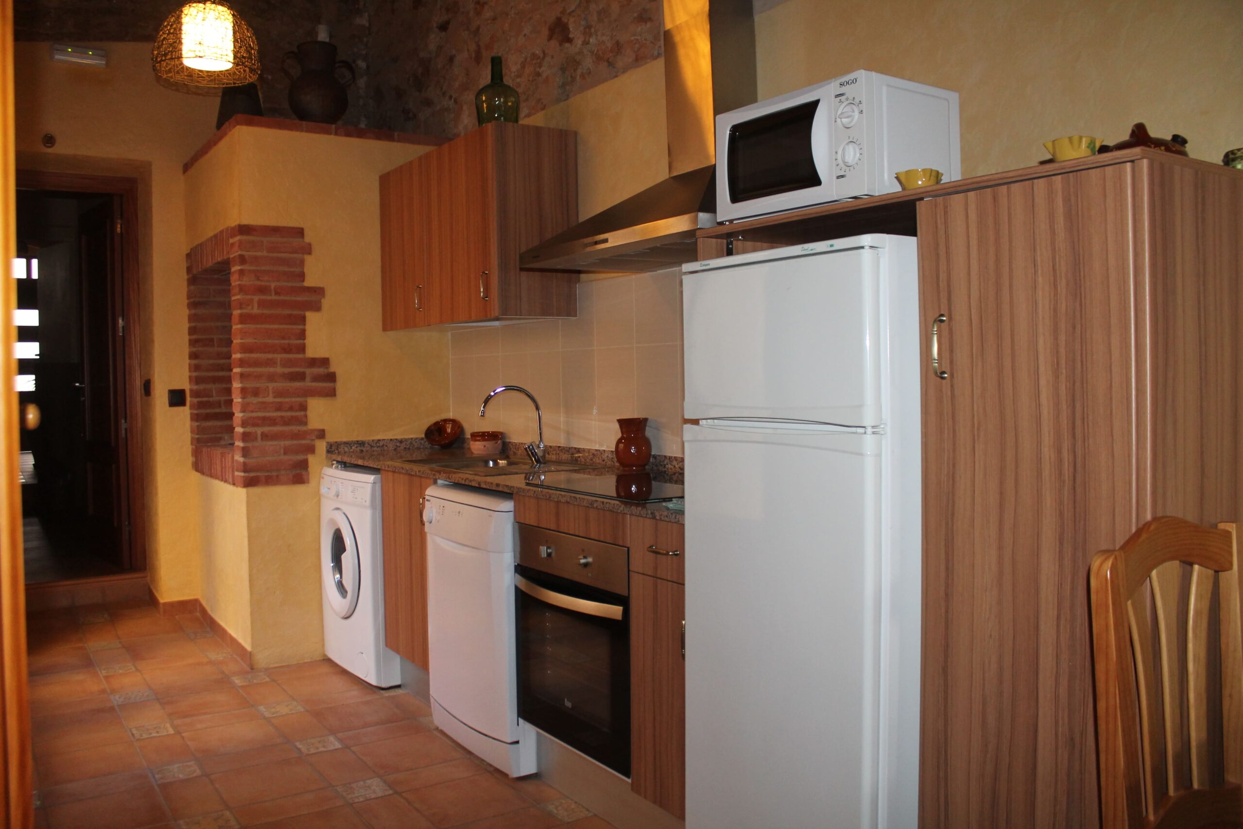 - Menjador, bany complet, cuina equipada, rentaplats, nevera, forn i vitroceràmica